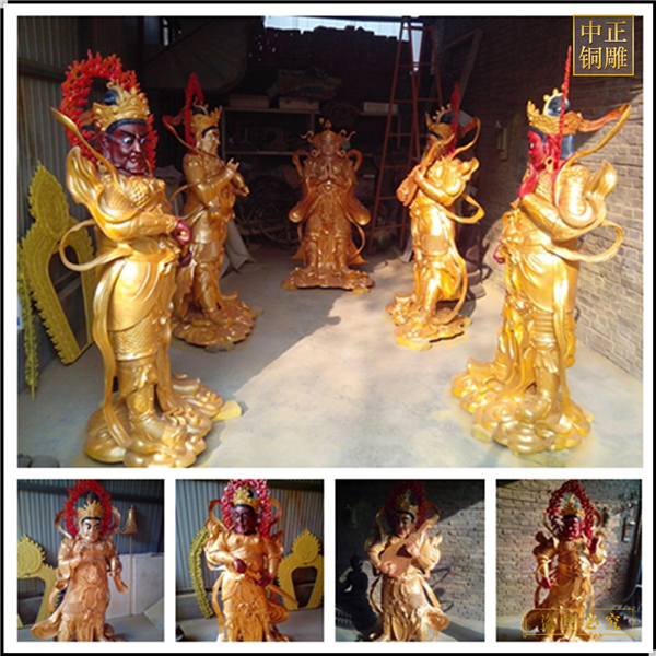 四大天王銅佛像是二十諸天中的四位天神銅像,它們所在的第一重天叫做四天王天,它們?cè)谒聫R的第一重殿的兩側(cè),被稱為天王殿,四大天王自身的顏色都是不一樣的,所在在制作四大天王銅佛像的時(shí)候,通常都是彩繪的,這樣可以有利于人們對(duì)四大天王的區(qū)分,但是如果你了解四大天王,那么即使是鍍金的、青銅的、紫銅的四大天王銅佛像,也是可以區(qū)分的非常清楚的。