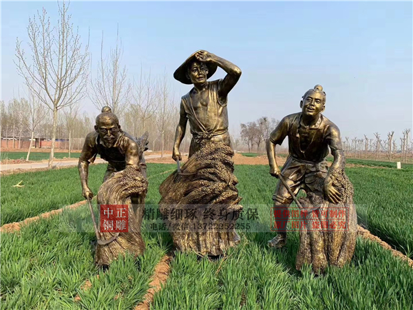 我公司生產(chǎn)的慶豐收主題景觀小品雕塑,從農(nóng)耕到播種到秋收,涵蓋了整個勞動范圍,以寫實的手法塑造了一代農(nóng)民對豐收的向往、對生活的追求,他們懷著樂觀 的心態(tài),邁著堅實的步伐,眼神里透著堅毅,執(zhí)著耕作在希望的田野上。