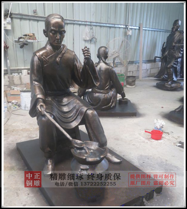 古代人物雕塑是人物雕塑中重要的一種,我廠通過對肖像的準(zhǔn)確表現(xiàn),把古代人物雕塑形體展現(xiàn),比如銅關(guān)公像,通過這一古代人物雕塑展示了關(guān)羽的忠勇形象。張仲景、華佗雕塑等等,都是通過雕塑的技法,展示出古人的風(fēng)姿。