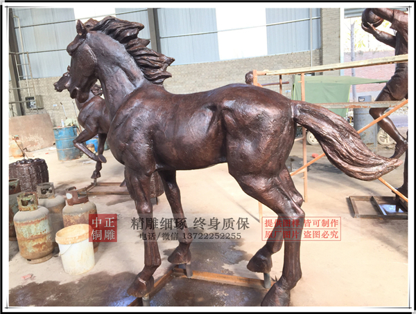 銅馬廠家雕刻出的馬,雄壯無比,力大無窮,追月逐日,披星跨斗,乘風(fēng)御雨,不舍晝夜。這正是中華民族戰(zhàn)天斗地,征服自然的生動(dòng)寫照,是炎黃子孫克服困難,永遠(yuǎn)前進(jìn),是中國人民不畏艱險(xiǎn),樂觀向上的生命意義的反映。所以其一般擺放在企業(yè)門口既有拼搏向上的精神,也有招賢納才的寓意!