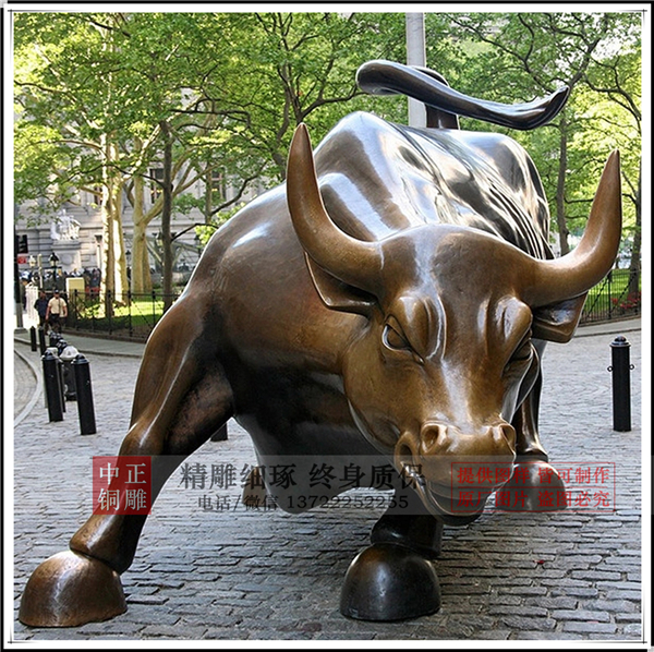 華爾街銅牛是非常有名的銅牛雕塑,我公司提供大華爾街牛的訂做,我們制做各種規(guī)格型號(hào)的華爾街銅牛作品。華爾街牛無論是做為廣場(chǎng)雕塑,還是做為園林雕塑,或者商業(yè)街雕塑、都是很適合的。您可以根據(jù)環(huán)境確定您要制做的華爾街牛的大小。