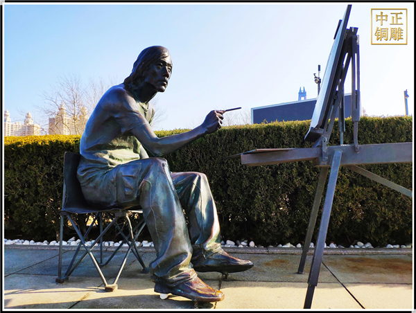 2、藝術感和可觀性:人物雕塑除了在人物的面部和細節(jié)刻畫上非常精細以外,還把素繪、著色等藝術手段,巧妙的運用到雕塑的制作中,從而具有現(xiàn)代藝術感,也提高了觀賞價值。