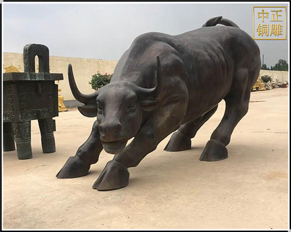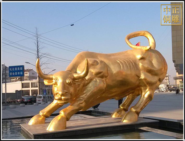 美國(guó)華爾街紐約證券交易所門前便有一只“旺市銅?!?是重金邀請(qǐng)著名塑大師及鑄造大家以5噸青銅精心澆鑄而成。此牛形體健壯,磅礴,人們以此牛來喻意證券行情的“牛市”發(fā)展,也是人們看好“牛市”的一種心理意識(shí),表達(dá)對(duì)證券、全球金融、貿(mào)易、工商人士的祝福,希望他們牛氣相隨、事業(yè)發(fā)達(dá),如今被更多人引伸為“幸運(yùn)?!?。