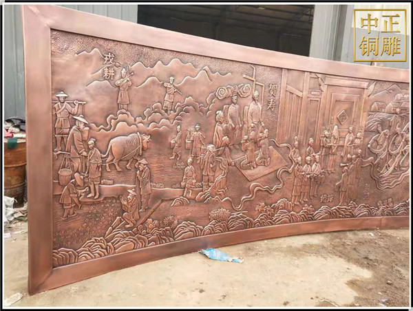 浮雕是雕刻的一種,雕刻者在一塊平板上將他要塑造的形象雕刻出來,使它脫離原來材料的平面。銅浮雕是雕塑與繪畫結合的產物,用壓縮的辦法來處理對象,靠透視等因素來表現三維空間,并只供一面或兩面觀看。