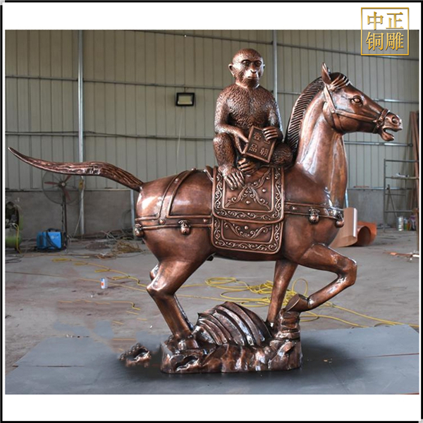 由于本性的豪放不羈、加上有著強健不息的氣數,所以擺設風水馬讓人有振作奮發的作為。在風水里銅馬的造型有以一只馬背上騎著一只猴子這是“馬上封侯”(因為“猴”與“侯”同音)。這“馬上封侯”最利公務員求升職之用。