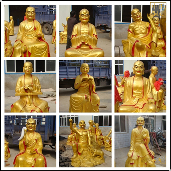 而這些羅漢的形象都是由后來的藝術家憑借自己的想象創作出來的,原來這些羅漢像并沒有固定的形象。古代許多著名畫家都畫過十六羅漢圖,而現在的羅漢像大多也是參考那些畫像而創作出來的。羅漢除了有銅雕十八羅漢和十六羅漢之分,還有更大陣勢的銅雕五百羅漢呢?