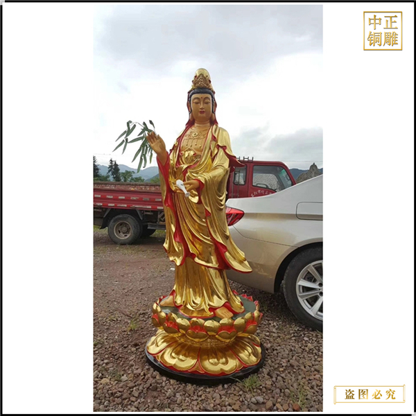 除此之外,觀音菩薩銅雕手持的柳枝還有更深的含義。柳樹在春天發芽,代表菩薩的心像春天一樣長。這也意味著佛教可以像萬物一樣蓬勃發展。一陣和煦的微風吹來,楊柳在風中搖曳,也代表著佛祖心中柔軟的悅意。