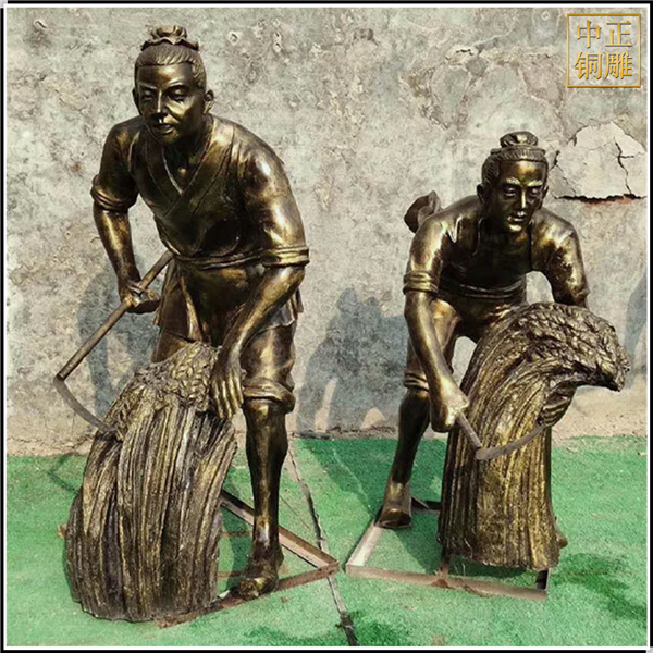 中正銅雕-割麥子人物銅雕塑、割麥子人物銅雕塑價格、割麥子人物銅雕塑廠家,我公司集科研、開發設計、普通鑄造、一次性整體澆鑄、精密鑄造于一體。本公司技術力量雄厚,設備,不但重視中國青銅器原有的藝術風格,還繼承了文物原有的藝術品味,在繼承和發揚古老文化的同時,更深一步為新老客戶定身量制各種銅制、鐵制工藝品等產品,曾多次受到寺廟長老和美術學院教授的好評。