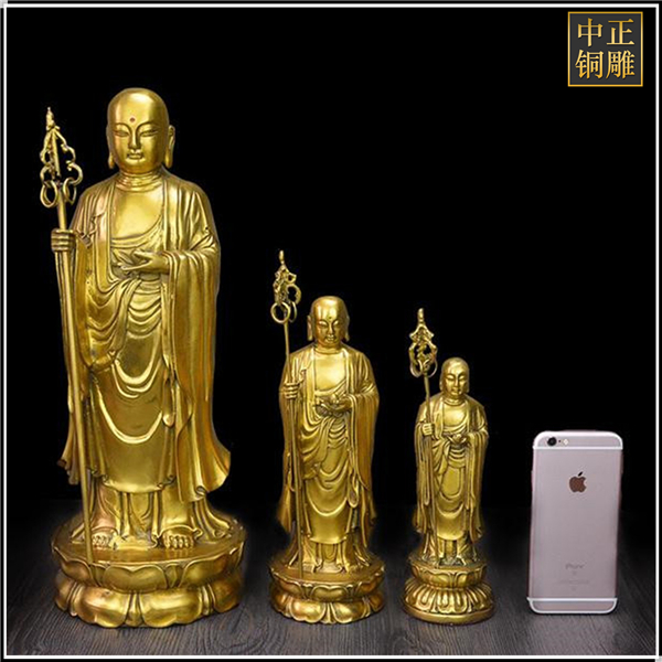 在家擺放銅佛像一定要注意,室內保持光線明亮、空氣流通。外出前,應將油燈、香燭之火熄滅。佛堂是清凈莊嚴之處,為禮拜、課誦、禪修、研讀經書等修持所用,不宜于中嬉鬧談笑、宴客飲食等,以免有失對佛菩薩的恭敬。中正銅雕-地藏王擺件、地藏王擺件價格、地藏王擺件廠家,我廠是一家以設計、制作、安裝為一體的發展型企業。公司坐落在中國銅雕之鄉---河北唐縣,成立于1984年。公司自成立以來,以優質的雕塑工藝,優異的性價比,一體化的銷售網絡,高效、完善的售后服務,飛速發展。成為了擁有設計、銷售、生產、安裝、維護為一體的銅雕塑制作商。