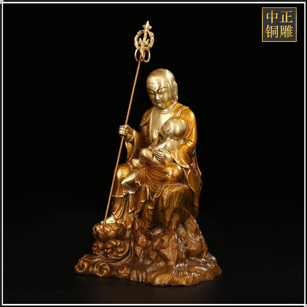 漢傳佛教中,有文殊、觀音、普賢、地藏四大菩薩,他們分別標(biāo)征智、悲、行、愿。四大菩薩中,前三者均是在家相,寬衣大袖,瓔珞莊嚴(yán),給人的感覺或肅穆,或慈悲。唯有地藏菩薩,須發(fā)剃盡,手持錫杖,身著衲衣,一副出家人的形象,所以最易辨認。中正銅雕-地藏菩薩子安銅像、地藏菩薩子安銅像廠家、地藏菩薩子安銅像價格,我廠是一家以設(shè)計、制作、安裝為一體的發(fā)展型企業(yè)。公司坐落在中國銅雕之鄉(xiāng)---河北唐縣,成立于1984年。公司自成立以來,以優(yōu)質(zhì)的雕塑工藝,優(yōu)異的性價比,一體化的銷售網(wǎng)絡(luò),高效、完善的售后服務(wù),飛速發(fā)展。成為了擁有設(shè)計、銷售、生產(chǎn)、安裝、維護為一體的銅雕塑制作商。