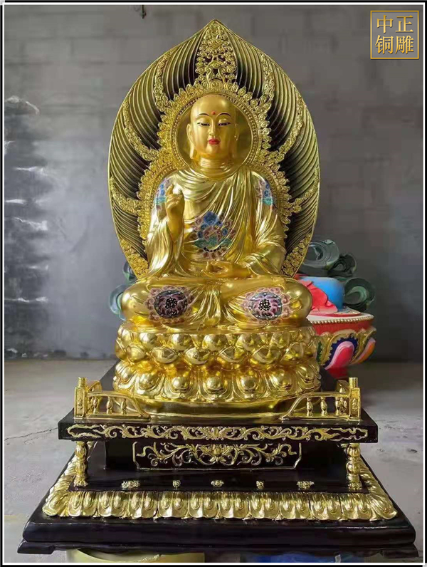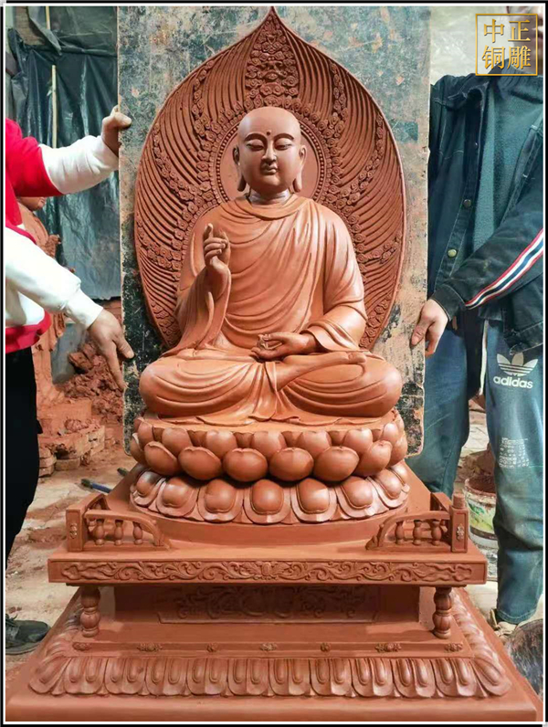 這件1.6米高的地藏王銅像,現(xiàn)已完成發(fā)貨安裝,從泥塑制作到上色歷時兩個月的時間,據(jù)《地藏菩薩本愿經(jīng)》載:其為釋迦既滅后,彌勒未生前,眾生賴以救苦,自誓必盡度六道眾生,始愿成佛的菩薩。相傳其顯靈說法的道場在安徽九華山。作為胎藏界地藏院的菩薩,形象為身披袈裟,掛瓔珞、戴寶冠,手持寶珠及錫杖,呈菩薩或沙門狀。九華山月身寶殿內(nèi)設(shè)七級木質(zhì)寶塔,每層佛龕八座,供奉地藏全身從像。大足177號地藏變相窟塑地藏菩薩中坐,左右各二化身像,造型古樸渾厚,線條洗練,突出了憨厚慈悲的性格特征。敦煌莫高窟五代、宋代窟的甬道頂部均繪有地藏像,體態(tài)豐滿,衣飾華麗,色彩濃艷,形式多變。唐縣中正銅雕工藝品廠是鑄銅雕塑的廠家。擁有設(shè)計師和雕塑團隊,引進的鑄造技術(shù),開發(fā)出一系列的銅制工藝品。